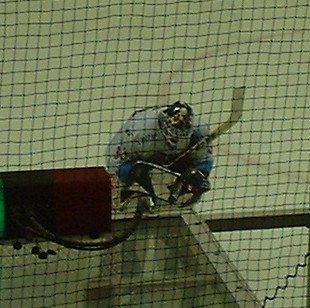 ここでもは大ピンチを呼び込んでしまう。DFのマークが一歩一歩遅れてしまい、ゴール左からシュートを撃たれれてしまう、ロブ反応したがマタからパックが抜けてしまう。しかし、幸いなことにパックがゴール右に逸れルーズパックとなって流れる。既に態勢を崩しているロブ。クレインズゴールはガラ空きだ。そのこぼれたパックを先にバックスに叩かれてしまったら、この試合はどうなっていたことか...。しかし、キャプテン小林が決死のダイブでバックスプレイヤーとパックの間にダイビングしてパックを遠ざける。「危ない、危ない」。しかし、なんとかこのP.K.も切り抜け1ピリ終了。