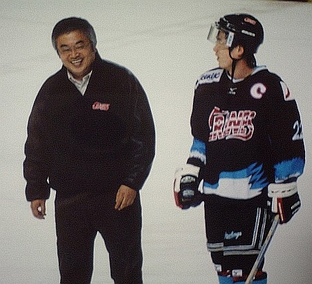 スターターは2つ目同志(王子はDFが3つ目のペア)。今日はクレインズが立ち上がりから素早い動きを見せ優位に試合を進める。一旦、自陣に押し戻されたパックを匡史が拾うと、自慢の快足ぶっ飛ばし、あっという間にニュートラルゾーンを抜け、敵陣に入ったところで、本部席フェンス際ブルーライン上に居た正和にパス。正和はそのままゴール前にパックを流すと、既に匡史がゴール前まで突進している。